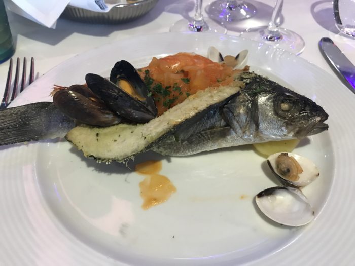 夕食は必ずデッキ2-3のアルバトロスレストランで食べてください。ちゃんとした料理がサーブされます。日本人には日本語のメニューが配られ、好きなだけ注文できます(食べられる分だけにしましょう)。いやあ、美味しかった。