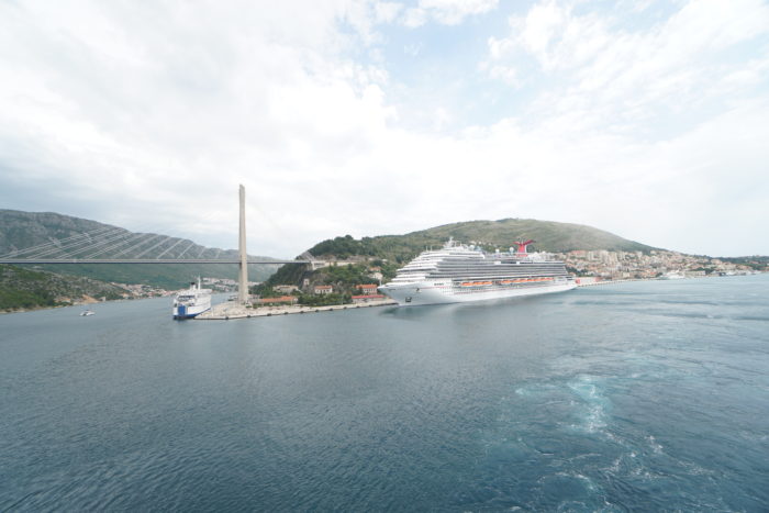 下船後すぐの場所で並んでいたタクシー運転手に相談。展望台へ行って、ドゥブロヴニク歴史地区入り口まで5人乗車で60ユーロでした(船内で売られている場往復バスチケットは一人10.95ユーロなので、人数が多ければ絶対タクシーをお勧めします)。
