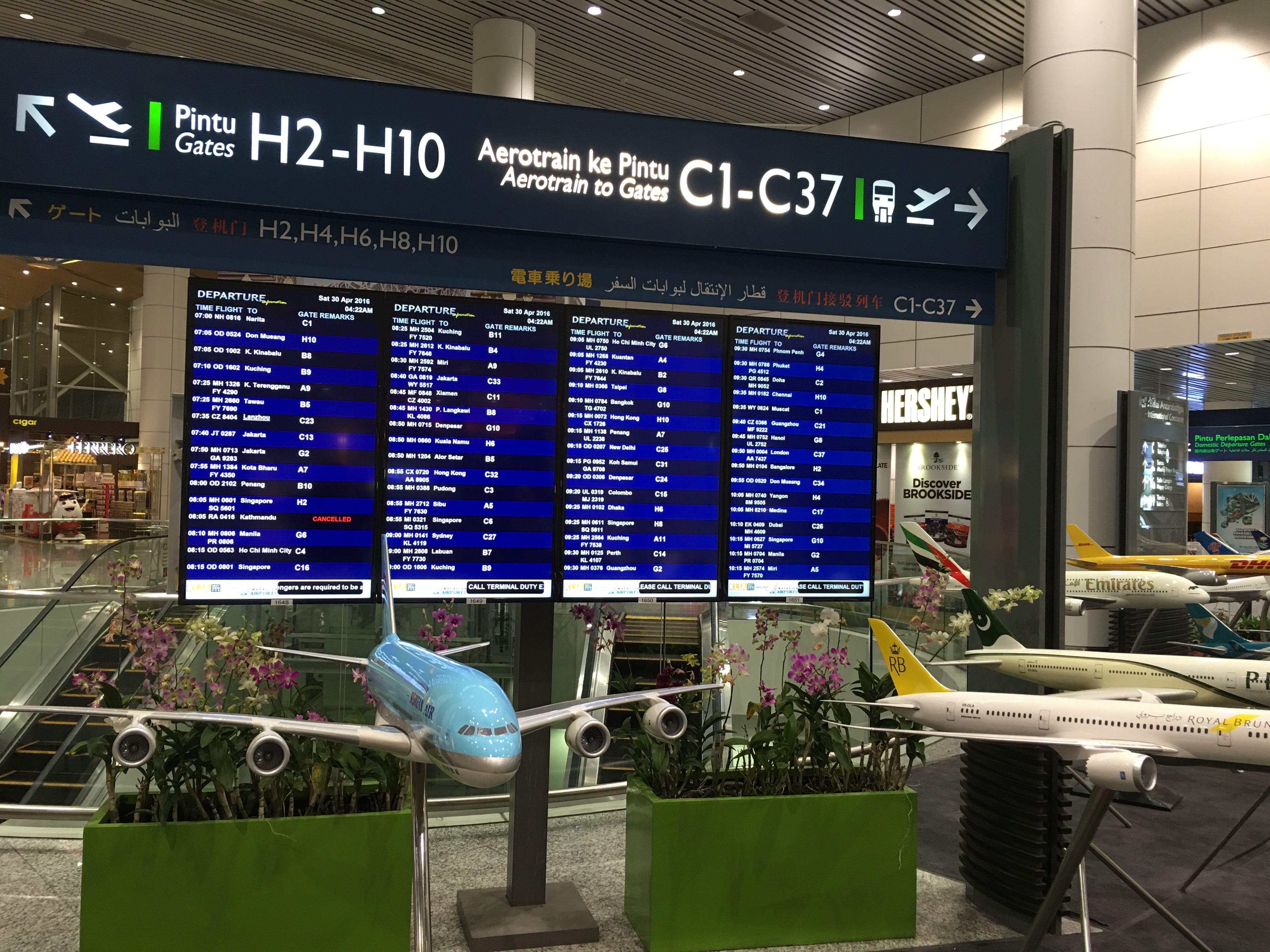 定刻通り、朝4時過ぎにクアラルンプールへ到着。お店はほとんど閉まっています。 お腹が空いたので、レストランがあるサテライトターミナルへシャトルで移動します。 中華のレストランで腹ごしらえです。 いよいよバリ島へ。MH71…