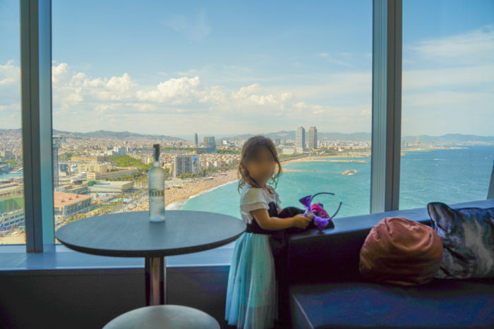 バルセロナ市街を後にして、ビーチリゾート地区であるバルセロネータへ移動します。バルセロネータは人工の海岸で、よく整備されている綺麗なビーチです。このビーチの先端に、Wバルセロナというホテルがあります。アメリカの旅行雑誌Travel+LeisureにバルセロナのベストホテルTop5として掲載されていて、部屋からの景色に惚れて予約しました。