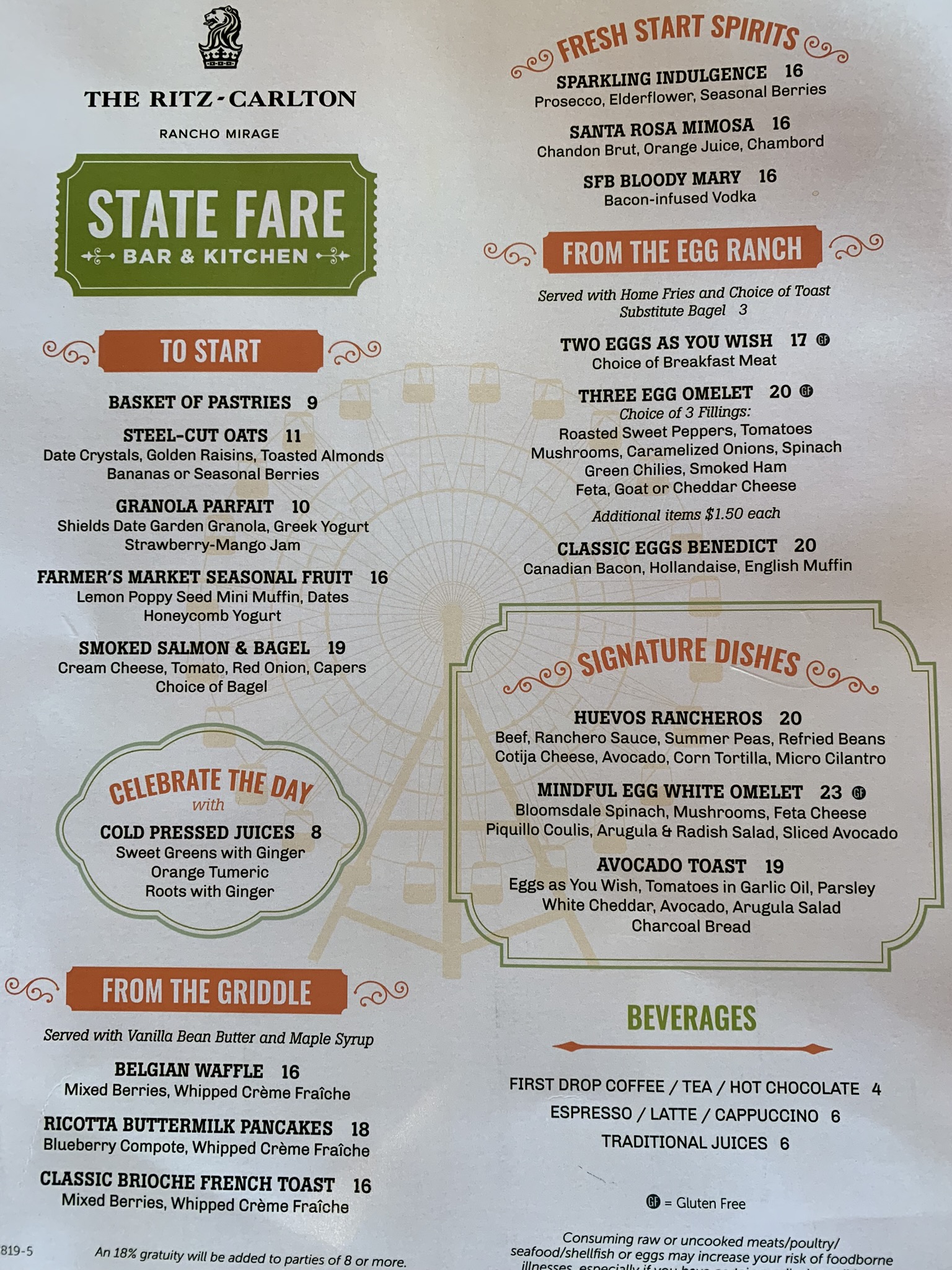 リッツ・カールトン ランチョ ミラージュ 朝食