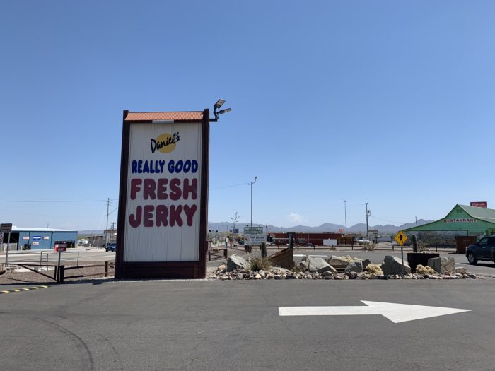 ガソリンスタンドの隣に、フレッシュジャーキーの看板を見つけました。ジャーキー屋って、日本で見たことがなかったので興味本位で立ち寄りました。