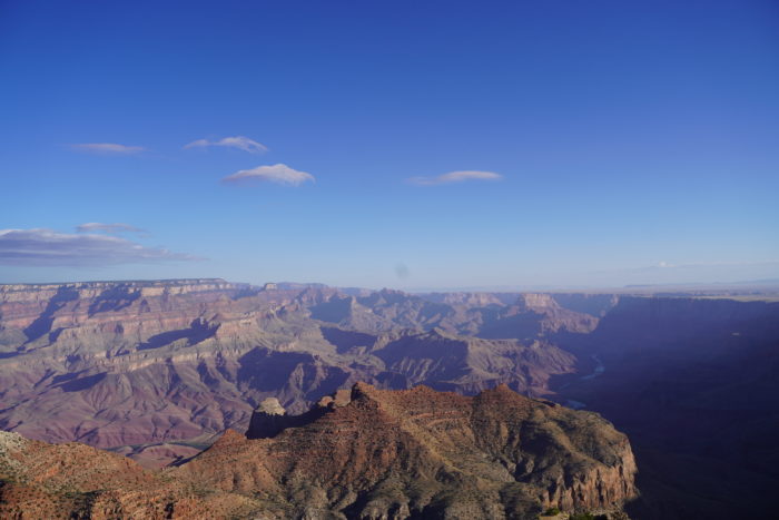6時前にロッジをチェックアウト。まずYavapai Point(ヤバパイ ポイント)へ移動して、朝日を見ます。昨日とは違って駐車場も空いていて、観光客も数組程でした。